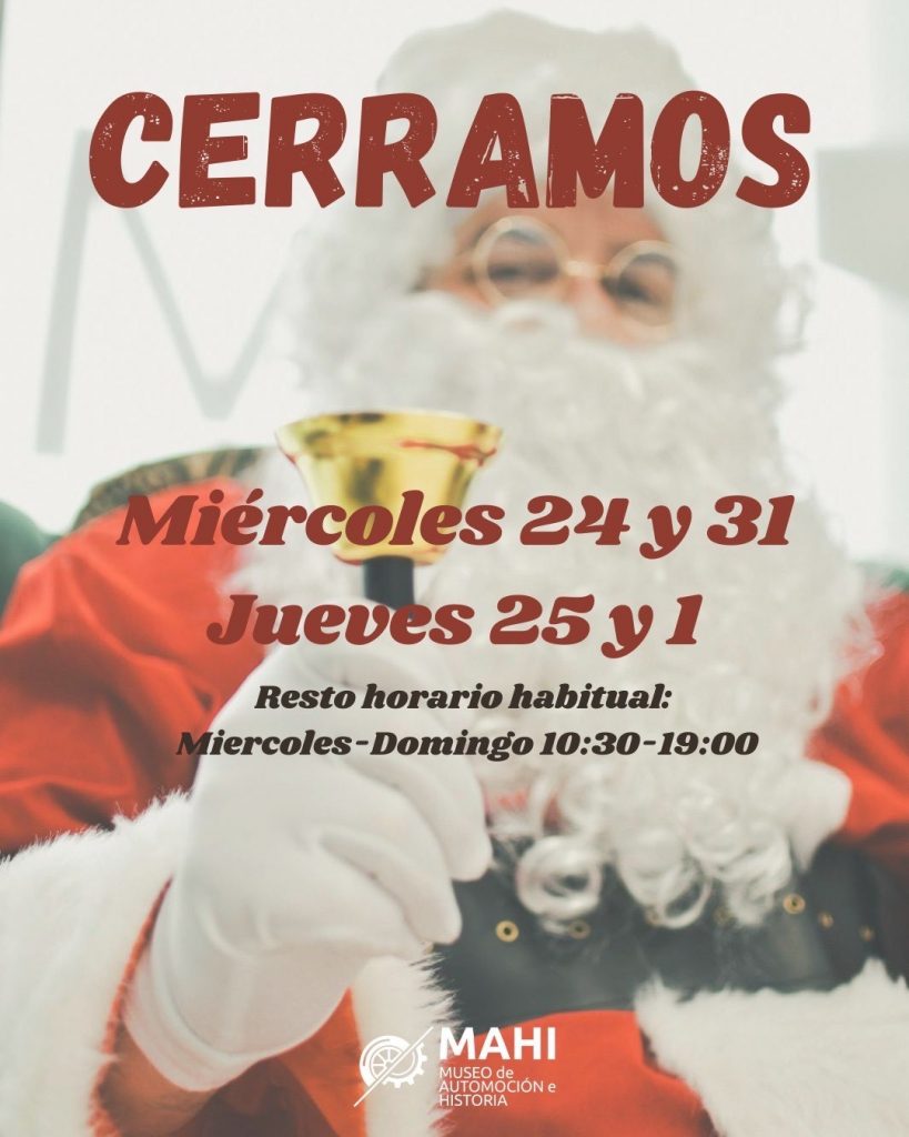 Les informamos de que el museo permanecerá cerrado por las fiestas en los siguientes días: